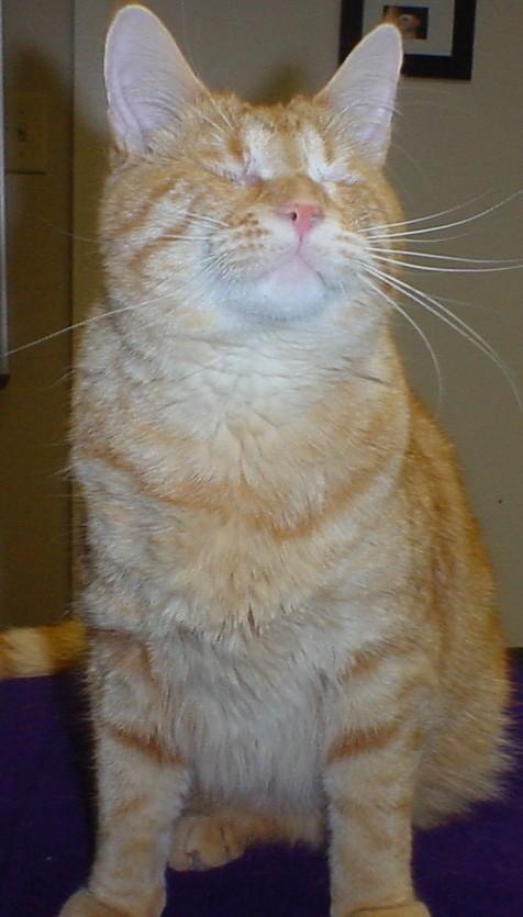 In July of 2006, a tiny orange tabby kitten weighing only 1 lb 2 oz was presented to our clinic. This amazing little guy was surprisingly bright despite having severe eye disease. Both of his eyes were damaged from an aggressive infection. Our veterinarians tried in vain to save his eyes and sight, but after 5 days of an intensive medication schedule, it was clear there was no hope in saving them.